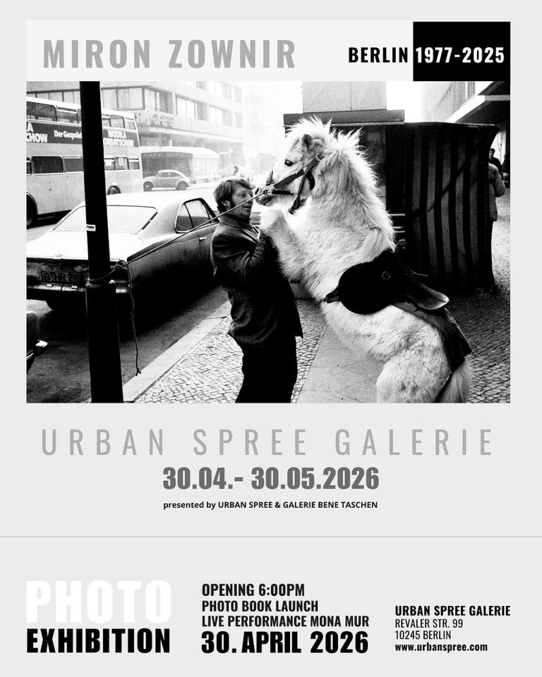 Eine visuelle Zeitreise durch das Berliner Werk des deutsch-ukrainischen Fotografen Miron Zownir - von der geteilten Stadt bis zur wiedervereinigten Metropole. Die URBAN SPREE GALERIE präsentiert in Zusammenarbeit mit der GALERIE BENE TASCHEN eine Retrospektive ikonischer Fotografien aus fast fünf Jahrzehnten. Zownirs Arbeiten fangen sowohl den rebellischen und melancholischen Geist West-Berlins bis 1980 ein als auch die architektonischen Umbrüche, die hedonistische Energie und die Protestbewegungen nach dem Fall der Berliner Mauer.